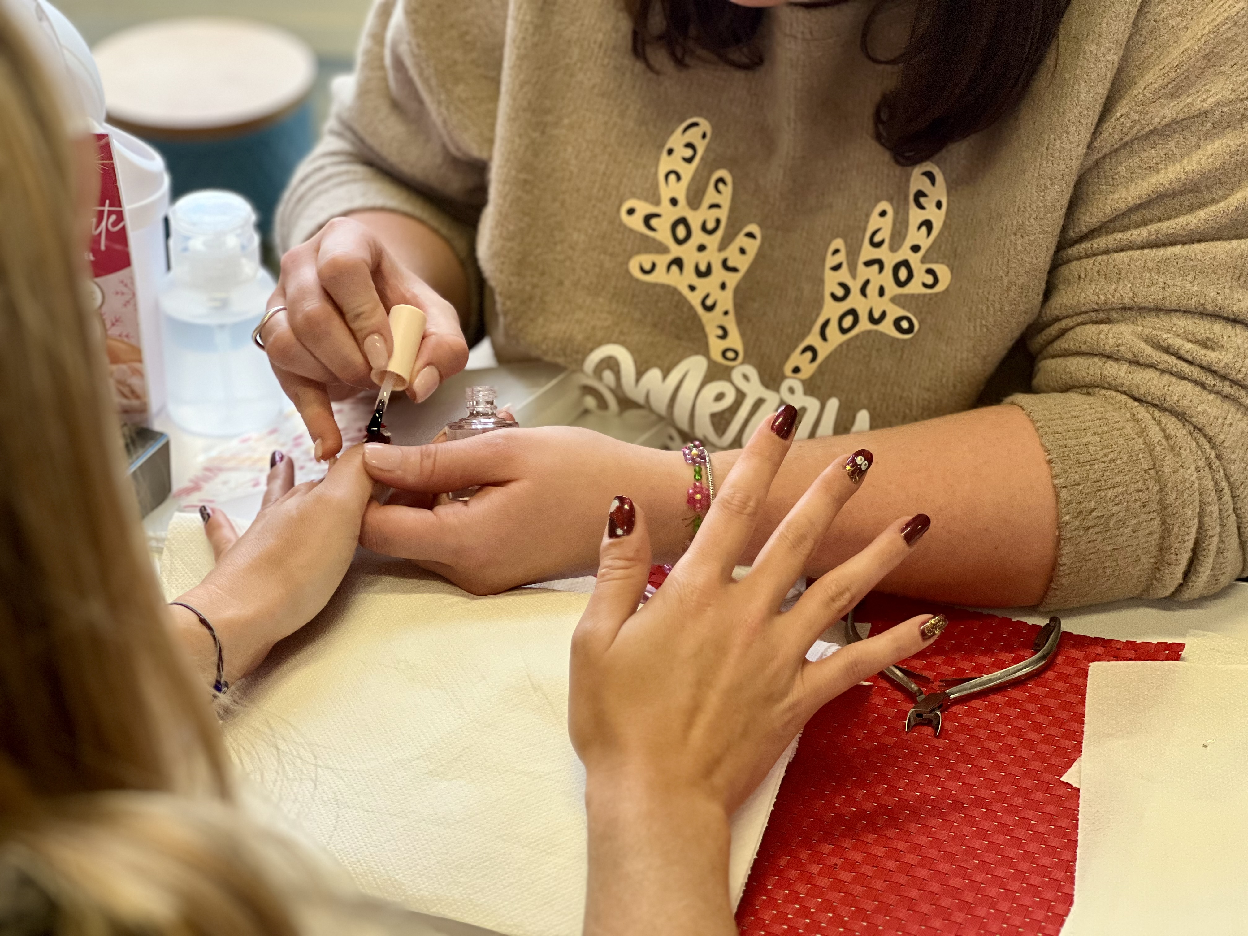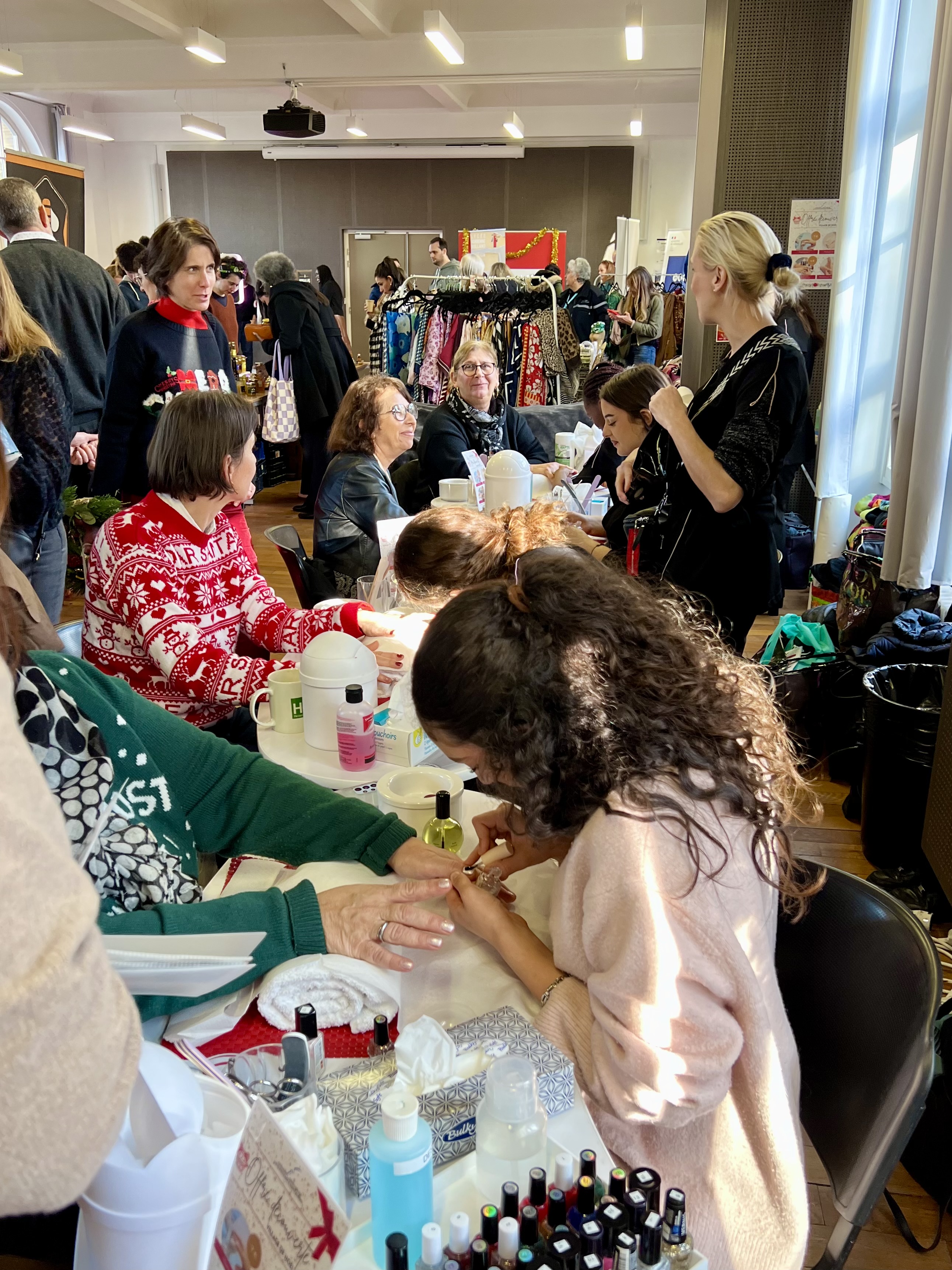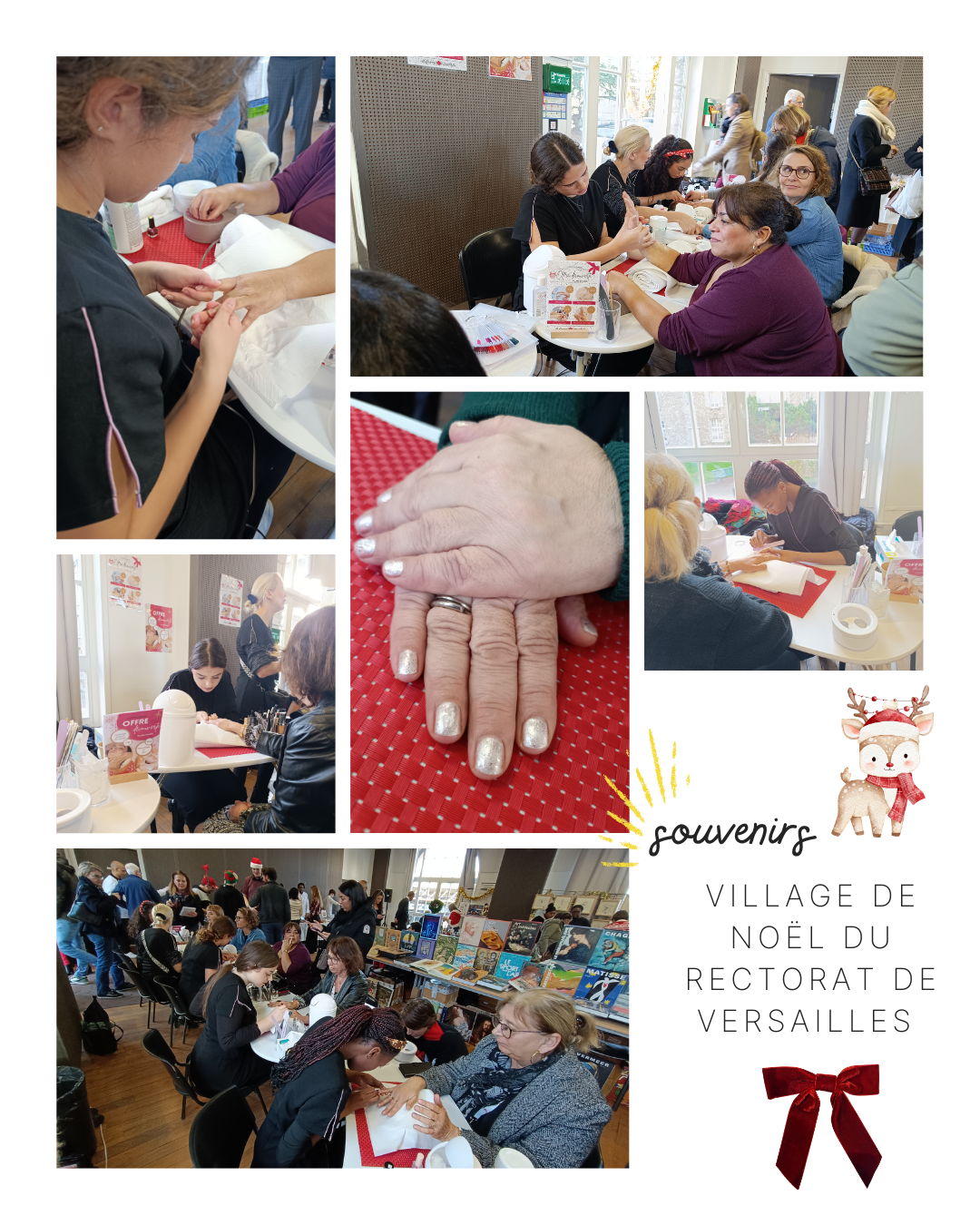 Les élèves de 1ère esthétique ont illuminé le Village de Noël du Rectorat de Versailles le mardi 16 décembre 2025 en proposant des soins des mains, des poses de vernis scintillantes et des modelages du visage et des mains pour une pause beauté pleine de magie.